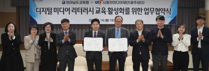 이미지 확대보기전라남도교육청(교육감 김대중)과 시청자미디어재단 광주센터(센터장 최유명)는 지난 14일 전라남도교육청에서 ‘디지털 미디어 리터러시 교육 활성화’를 위한 업무협약을 체결했다고 15일 전했다.