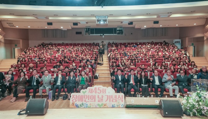 이미지 확대보기400여 명이 참여한 이번 행사는 장애인 인권 헌장 낭독, 유공자 표창 등 ‘장애인의 날’ 기념식 등 장애인 음악가들이 참여한 성악, 판소리, 가야금, 타악기 연주, 수어공연 등 다채로운 문화공연으로 구성됐다.