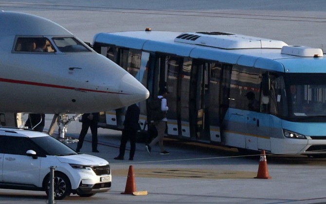 정용진 신세계 그룹 회장의 초청을 받아 1박 2일 일정으로 한국에 머무르는 트럼프 주니어는 전용기 편으로 입국했으며 애초 착륙 시간은 오후 4시 45분이었으나 출발이 다소 지연되면서 예정시간보다 1시간 40분가량 늦게 도착했다.