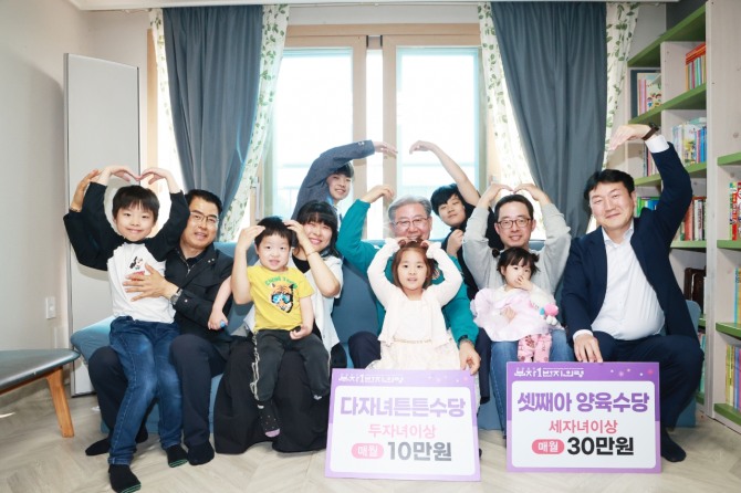 이미지 확대보기의령군에 따르면 8세 이상 자녀를 포함한 두 자녀 이상 가정은 매월 1인당 10만 원의 수당을 받을 수 있다. 게다가 셋째 이상 자녀에게는 출생부터 만 7세까지 매달 30만 원을 지원한다. 한 명의 자녀를 낳으면 매달 30만원씩 7년 동안이니 한 아이 당 총 2520만원의 지원금을 받게 되는 것이다. 연금처럼 매달 지급한다는 것도 긍정적이다. 대부분 지자체가 일회성에 그치는 것과는 대비된다.
