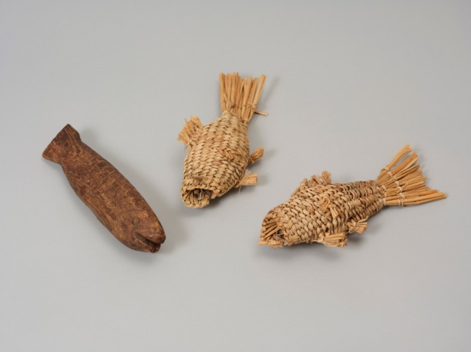 이 가운데 안산어촌민속박물관의 ‘목어 가족’은 안산지역에서 풍어제를 지낼 때 사용했던 제례용 유물로, 지푸라기 공예로 만든 물고기 2점과 나무를 조각한 목제 물고기 1점으로 구성됐다.