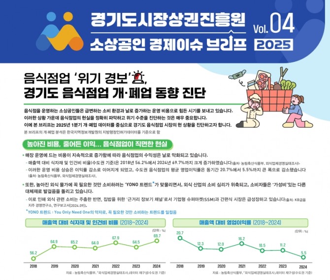 이미지 확대보기이번 브리프는 2025년 1분기 음식점업 데이터를 중심으로 경영 환경 악화, 소비 변화, 시군별 현황 등을 종합적으로 진단하고, 정책 대응 방향을 제시하기 위해 마련됐다.