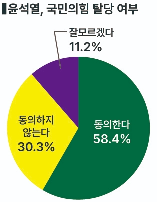 '尹 탈당론' 58.4% 동의…여권 내 갈등 표출, 대선판 영향 불가피