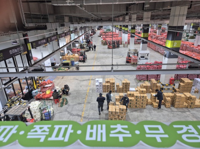 성수기의 원활한 농산물 반입을 위해 3층에 28톤 화물차가 올라갈 수 있도록 하중 설계했고, 1~3층간의 수직물류 편의를 위해 차량․전동차․지게차 진출입로 4곳, 화물용 엘리베이터 6대를 설계에 반영했다.
