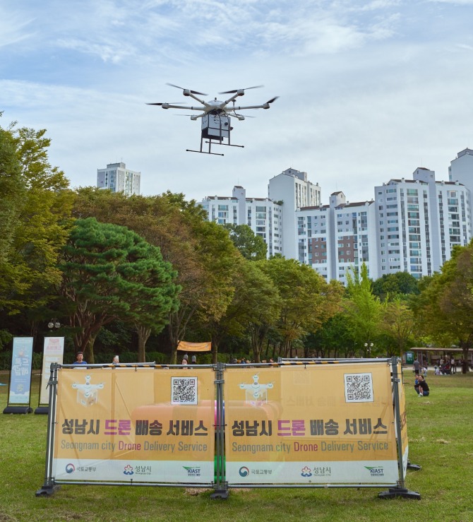 이런 가운데 성남시는 지난 2023년 민간 기업과 협업해 전국 최초로 국토교통부 공모에 선정돼 도심 유상 드론 배송 서비스를 도입해 우수 사례로 꼽히고 있다.
