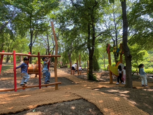 새롭게 구성된 주요 놀이시설로는 △통나무 통과하기 △실로폰 치기 △바구니 해먹 △나무 사선 지나기 등이 있다. 자연 속 모험과 감각 자극을 통해 아이들의 창의력과 균형감각, 감성 발달을 유도하는 것이 특징이다.