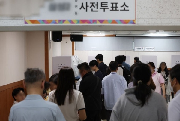 중앙선거관리위원회에 따르면 29일과 30일 양일 간 유권자 4439만1871명 중 1542만3607명(34.74%)가 사전 투표에 참여했다. 지난 20대 선거 대비 2.19%p 줄어든 수치다.