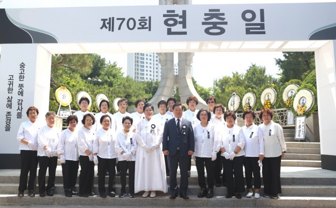 이미지 확대보기이날 열린 추념식에서는 국가유공자와 시민 등 450여 명이 참석한 가운데 순국선열에 대한 묵념, 헌화 및 분향, 추념사, 헌시 낭독, 현충일 노래 제창, 참배 등이 진행됐다.
