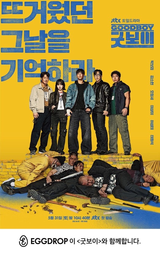 에그드랍 관계자는 “JTBC 드라마 ‘굿보이’와 함께하는 이번 제작지원을 통해 브랜드의 감성과 에너지를 더욱 많은 고객에게 전달할 수 있을 것으로 기대한다”며, “드라마 속 주요 장면에 자연스럽게 등장하는 에그드랍 매장과 메뉴를 통해 브랜드 친밀도를 높이는 한편, 향후 다양한 마케팅 활동도 함께 전개할 예정”이라고 밝혔다.