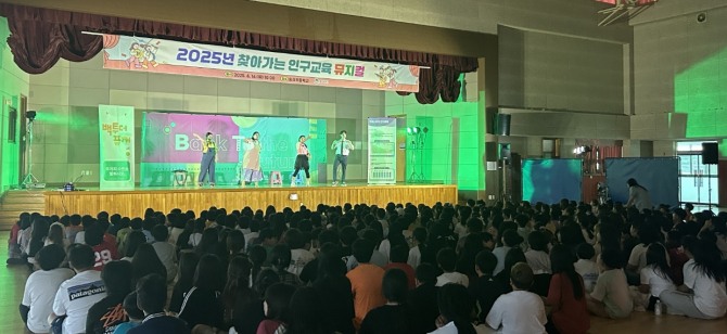 시는 사전 신청을 통해 선정된 관내 초등학교 4개교와 중학교 2개교를 대상으로 인구교육을 순차적으로 진행하고 있으며, 지난 16일 송신초등학교에서 첫 공연을 시작으로 총 1300여 명의 학생이 교육에 참여할 예정이다.