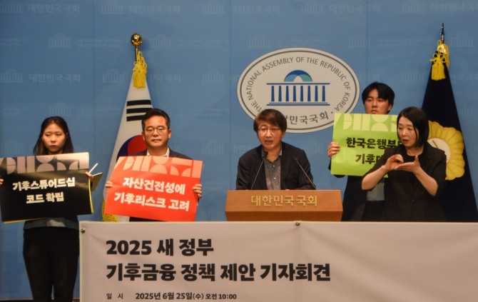 이미지 확대보기녹색전환연구소·플랜1.5·한국사회책임투자포럼(KoSIF) 등 3개 기관은 25일 오전 서울 여의도 국회 소통관에서 민병덕 더불어민주당 의원 주관으로 기자회견을 열고, 새로 출범한 이재명 정부에 ‘기후금융 10대 정책’을 제안했다.