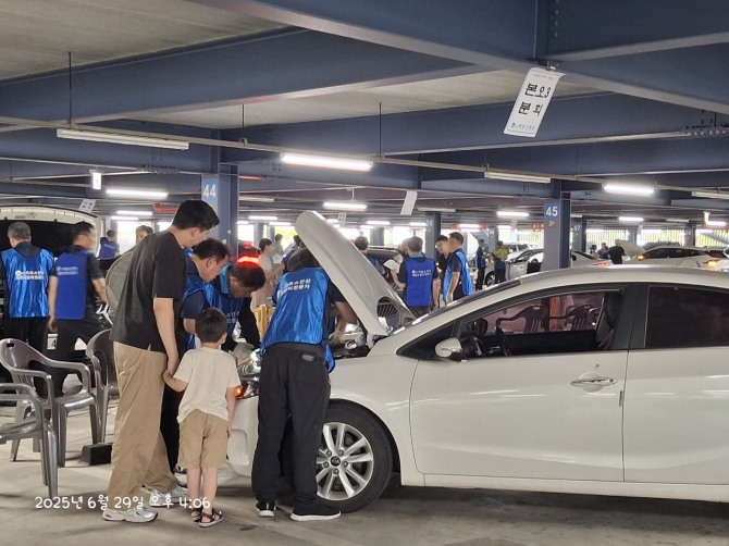 이날 자동차 정비 자격을 갖춘 300여 명의 정비원들은 약 1300대 차량의 △엔진오일 등 오일류 점검·보충 △타이어·에어컨·배터리·와이퍼 등 점검 △헤드램프 등 각종 전구 등을 전반적으로 점검했다. 특히, 추가 점검이 필요한 차량에 대해서는 자동차 점검 진단표 교부를 통해 자동차 상태를 고지하고 상담 서비스를 제공했다.