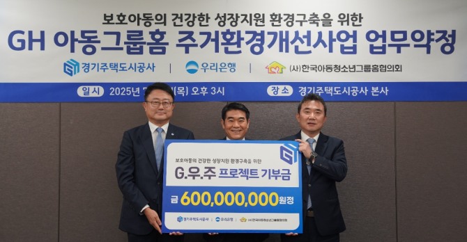 이미지 확대보기이날 수원 GH 본사에서 열린 협약식은 보호아동의 주거안정과 생활환경 개선이라는 공동 목표 아래 마련됐으며, ‘G.우.주 프로젝트(GH+우리은행 아동그룹홈 주거환경 개선사업)’의 본격적인 착수를 알렸다.