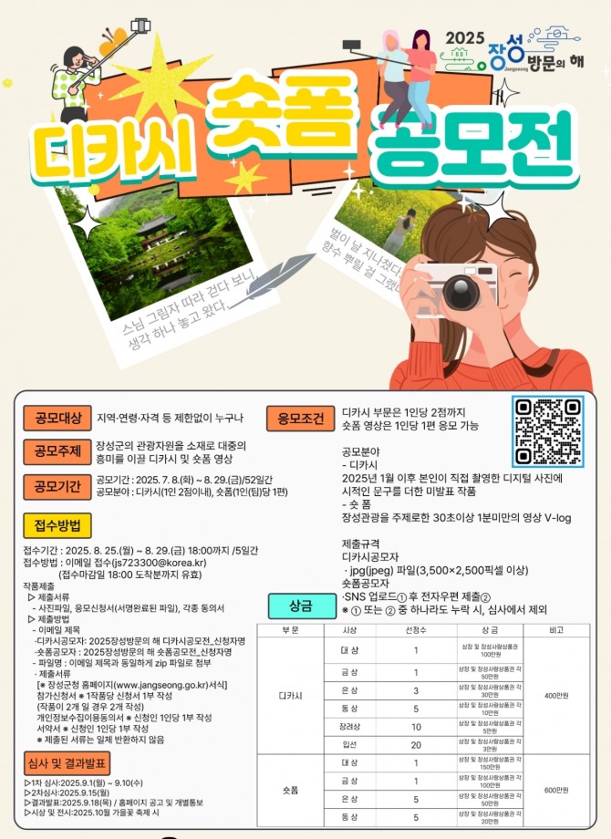 ‘장성 방문의 해’ 기념 공모전… 8월 25~29일 이메일 접수