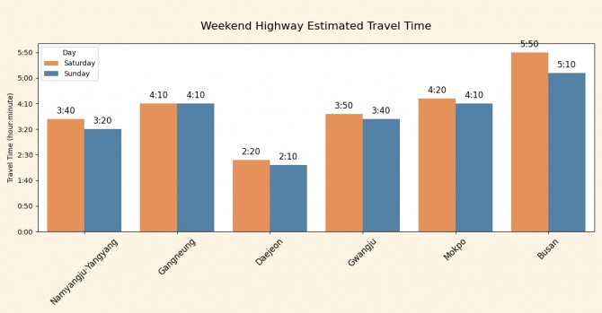서울 출발기준 부산까지 토요일은 5시간 50분 소요될 것으로 예상된다.