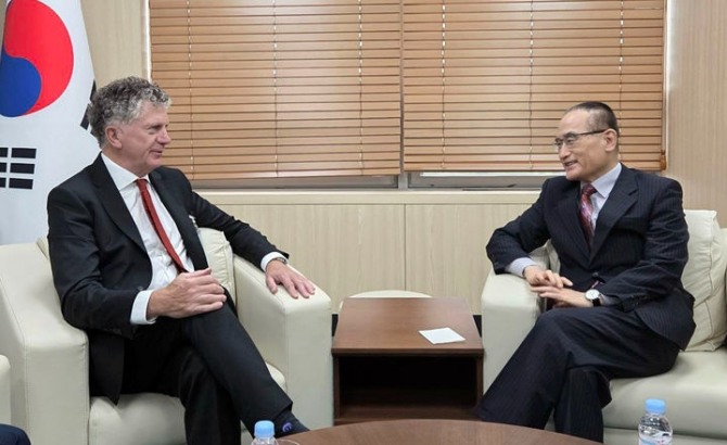 이미지 확대보기위성락 국가안보실장은 15일 방한 중인 조너선 파월 영국 국가안보보좌관을 용산 대통령실에서 만나 방산 분야 협력 강화 방안을 논의했다.