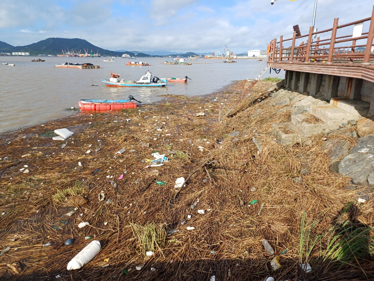 해양쓰레기 수거는 구역별로 해상은 해양수산청, 육상 해안가는 목포시가 각각 담당하고 있다. 해양수산청은 순찰선 1척, 청항선 2척, 어촌어항공단 소속 선박 4척을 투입해 18일과 19일 이틀간 164톤의 해상 부유 쓰레기를 수거했다.
