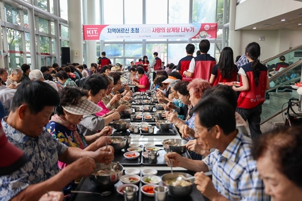 경남정보대학교는 지난 23일 교내 학생식당에서 지역 어르신 300여 명을 초청해 여름철 대표 보양식인‘사랑의 삼계탕 나누기’행사를 개최했다고 24일 밝혔다. 경남정보대는 지난 6월 23일 호국보훈의 달을 맞아 지역 보훈 가족 250여 명을 초청한 삼계탕 나누기 행사와 ‘사랑의 밥차’ 무료급식을 운영하는 등 다양한 지역공헌사업을 펼치고 있다.