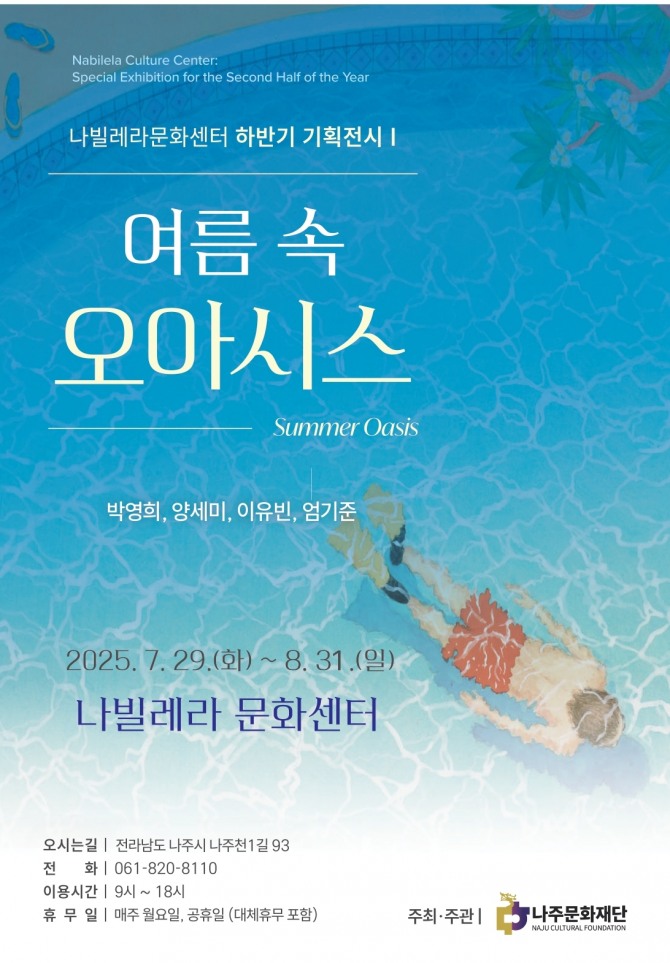 이미지 확대보기나주문화재단(이사장 윤병태)은 나빌레라문화센터에서 2025년 하반기 기획 전시 중 첫 번째로 ‘예술이 주는 쉼’을 주제로 구성해 기획전시를 진행한다고 28일 밝혔다.