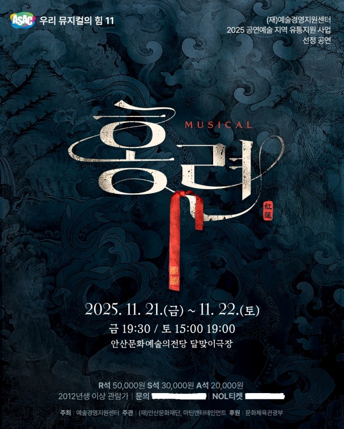 뮤지컬 ‘홍련’ 오는 11월 21일부터 22일까지 안산문화예술의전당 달맞이극장에서 개최되며, 오는 9월 5일까지 예매 시 30% 할인 혜택이 제공된다.