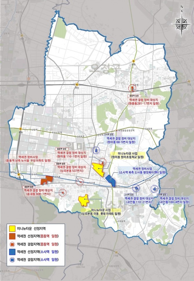 미니뉴타운 사업은 원도심 내 주거환경을 체계적으로 개선하는 광역 정비사업으로, 선정된 2곳은 △원미동 원미초등학교 일원(163,483㎡) △심곡본동 극동․롯데 아파트 일원(109,388㎡)이다.