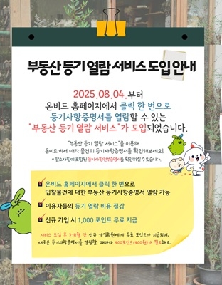 공매물건의 ‘등기사항 전부증명서’ 열람 및 발급 비용도 기존 대법원 인터넷등기소보다 40%이상 저렴한 건당 400원에 책정돼 부담없는 가격에 이용할 수 있다.
