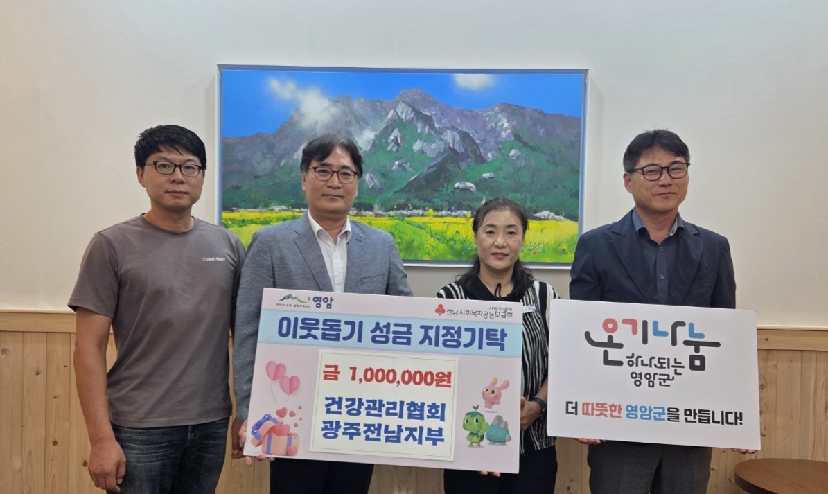 한국건강관리협회 광주전남지부(원장 김동규)가 지난 8일 영암군 저소득층을 위해 사용해 달라며 100만원을 전남사회복지공동모금회에 지정기탁했다고 12일 전했다.