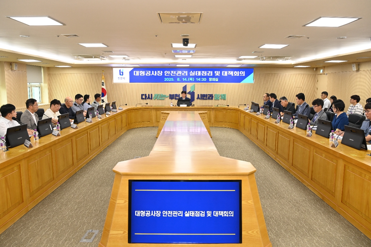 이미지 확대보기부천시는 지난 14일 시청 창의실에서 관내 대형 건설공사장 안전관리 강화를 위한 대책 회의를 열었다고 18일 밝혔다.