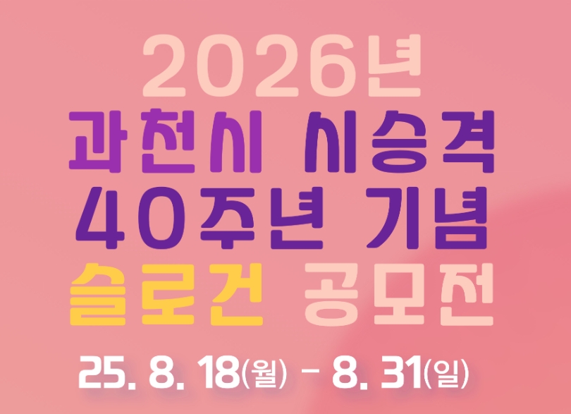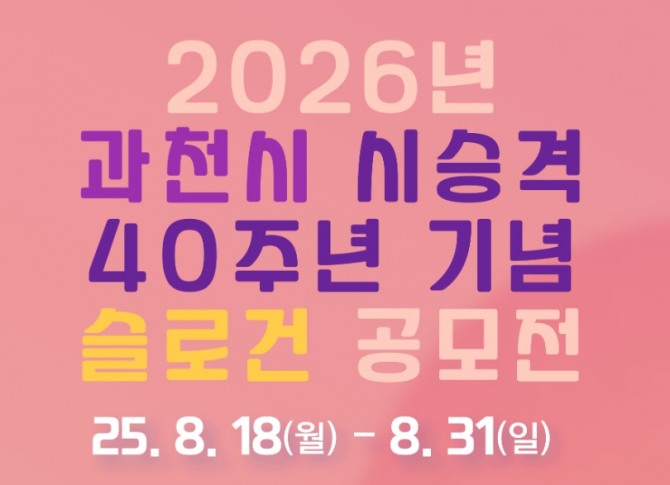 시 관계자는 “이번 슬로건 공모를 통해 지난 40년간의 성장과 성취를 돌아보고, 미래 100년을 향한 발전 비전을 시민과 함께 만들어가길 기대한다”며 “전 국민이 참여해 과천의 정체성과 미래 비전을 담은 슬로건을 제안해 주길 바란다”고 말했다.