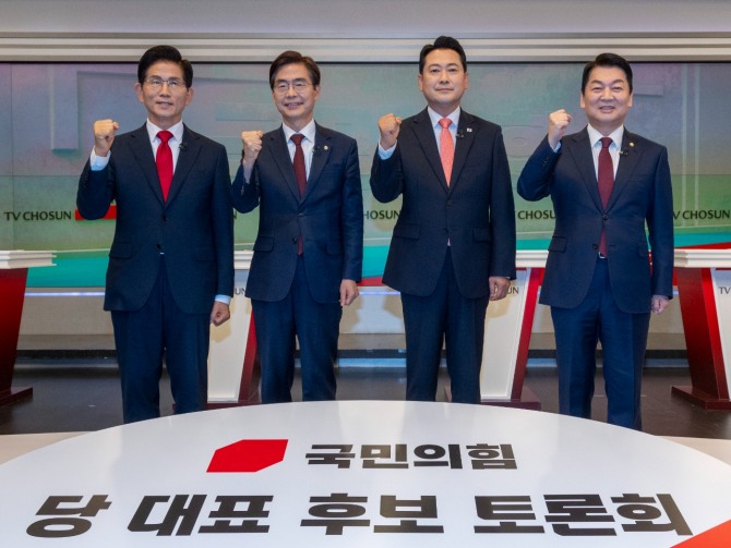 장 후보는 조 후보에게 "관저에 갔던 45명이 퇴출돼야 한다고 했는데 당대표가 되면 당론을 어긴 의원은 어떻게 할 것이냐"고 물었다.