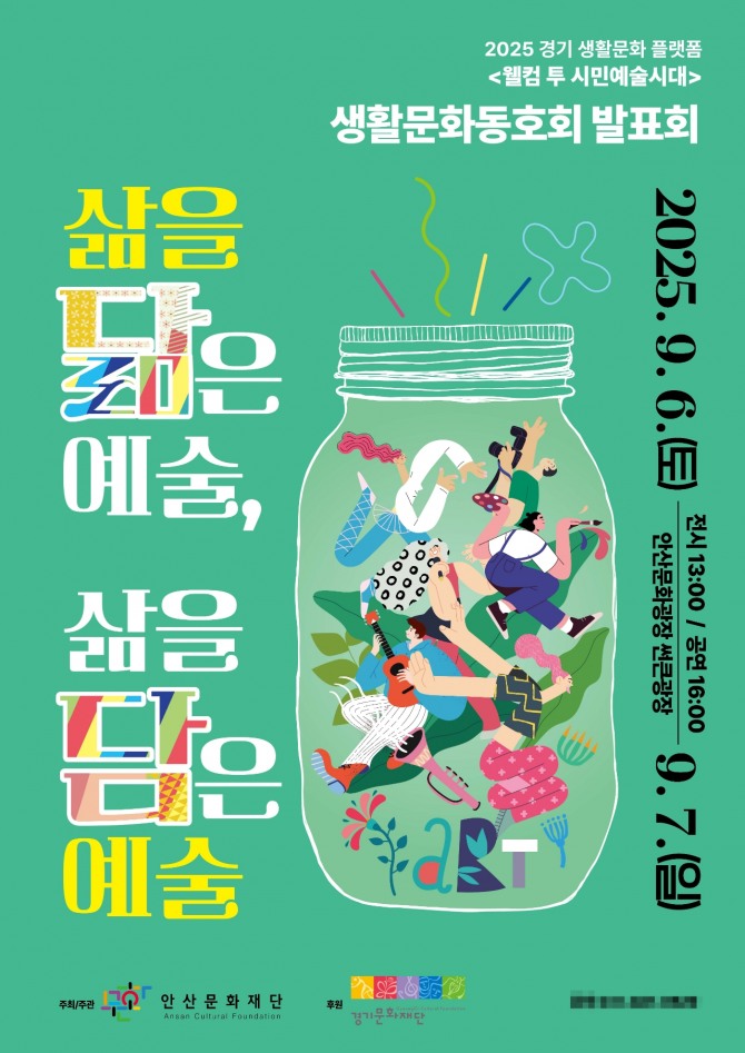 사업 담당자는 “웰컴 투 시민예술시대를 통해 안산에서 활동하는 생활문화동호회들의 ‘삶을 닮은 예술, 삶을 담은 예술’을 시민들에게 공유할 수 있는 계기가 되기를 바라며, 그들이 앞으로도 일상 속 문화예술 활동을 펼칠 수 있는 기회를 꾸준히 마련하겠다”고 밝혔다.