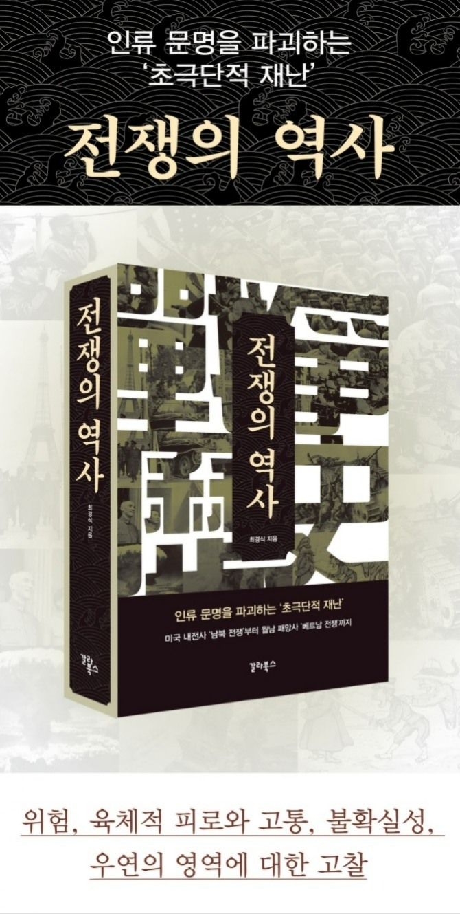 작가가 오랜 시간에 걸쳐 쓴 '전쟁의 역사'는 역사의 변곡점이 된 주요 전쟁사 10가지를 담고 있다. 미국 내전사인 ‘남북 전쟁’, 전쟁사 최대 이변인 ‘러일 전쟁’, 극심한 소모전인 ‘제1차 세계대전’, 동아시아 최악의 전쟁인 ‘중일 전쟁’, 제2차 세계대전의 시작인 ‘서부 전역’, 인류 역사상 최대 최악의 전쟁인 ‘독소 전쟁’, 일본 제국주의를 몰락시킨 ‘태평양 전쟁’, 중국 대륙 패권 둘러싼 거대한 충돌인 ‘국공 내전’, 냉전 시대 최악의 열전인 ‘한국 전쟁’, 월남 패망사인 ‘베트남 전쟁’ 등이다.