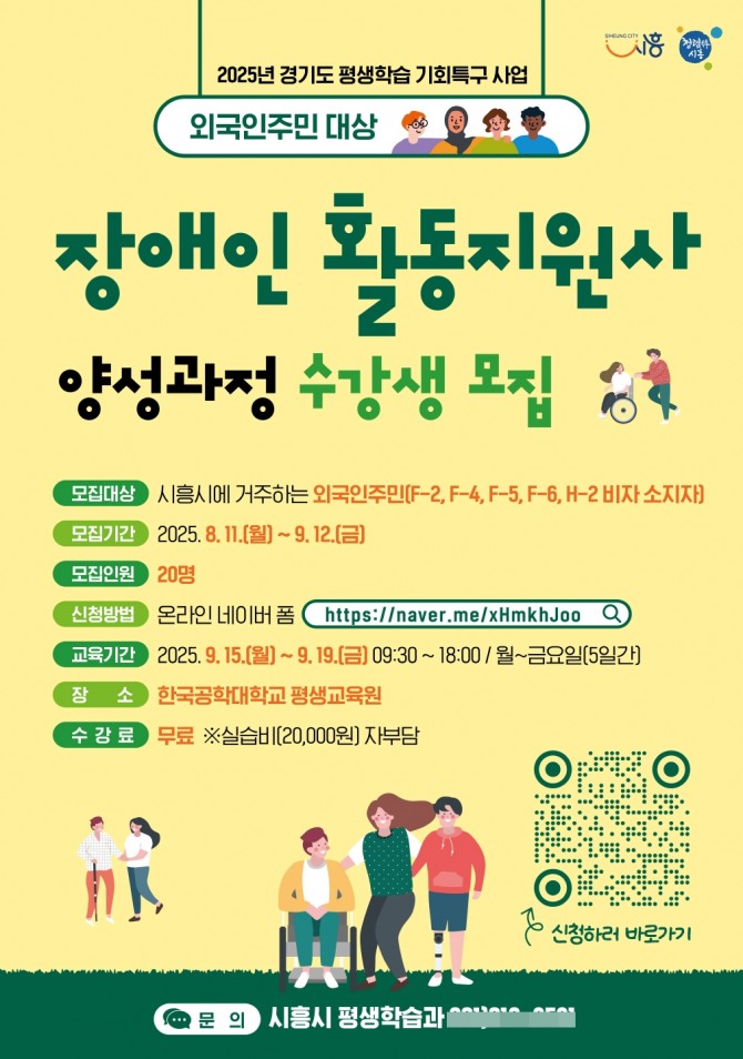 심윤식 시 복지국장은 “이번 프로그램은 외국인 주민이 전문 자격을 취득해 지역사회에 안정적으로 정착하도록 돕고, 장애인 돌봄 분야 인력 수요에도 이바지할 것으로 기대한다”라며 “외국인 주민이 직업 역량을 강화하고 지역사회의 일원으로 성장하는 기회가 되길 바란다”라고 말했다.
