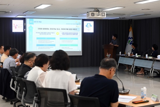 이번 보고회에는 차준택 구청장을 비롯해 구의원, 탄소중립·녹색성장위원회 위원, 관계 공무원 및 연구용역 수행기관 등 30여 명이 참석했다.