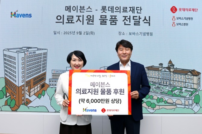전달식에는 메이븐스 안창규 대표와 롯데의료재단 나해리 보바스의료원장을 비롯한 양 기관 관계자들이 참석해 후원의 의미를 공유하고 지속적인 협력을 약속했다.