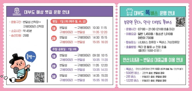이민근 안산시장은 “안산시만의 특수한 뱃길 사업을 관광자원과 연계해 보다 많은 관광객들이 안산의 매력을 느낄 수 있도록 할 것”이라며 “대부도 뱃길이 관광도시의 핵심으로 자리 잡을 수 있도록 최선을 다하겠다”고