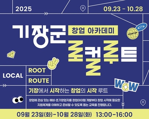 이미지 확대보기이번 ‘창업 아카데미’는 오는 9월 23일부터 10월 28일까지 기장군청(9층 홍의재 강의실)에서 총 5회차 과정으로 운영된다. 모집 인원은 회차별 20명 이내이며, 기장군에 거주하는 19세 이상 예비 및 초기 창업자라면 누구나 신청할 수 있다.