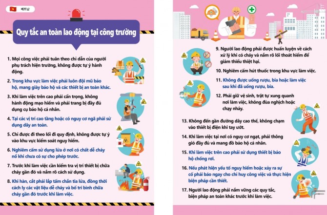 이 전단은 노동안전지킴이의 건설 현장 점검 시, 한글 안내문과 함께 외국인 노동자의 국적에 맞춰 배부된다.