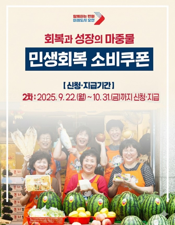 2차 지급은 1차와 동일하게 오산시 관내 사용, 연 매출 30억 원 이하 소상공인 매장 및 지역사랑상품권 가맹점에서의 사용, 11월 30일까지의 사용기간 조건이 적용된다.