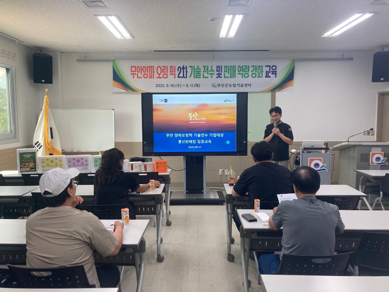 이번 교육은 ‘무안양파오링떡’의 대량생산 공정을 정착시키고, 온라인 판매 역량을 강화해 지역 농산물 소비 촉진과 농가 소득 증대를 도모하기 위해 마련됐다.