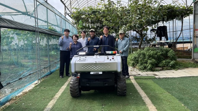 이미지 확대보기이번 체험단 운영은 지난 2월 대동로보틱스와 농업 분야 로봇 도입 업무협약의 일환으로 추진됐으며. 관내 농가를 대상으로 유선(와이어) 추종 방식의 운반로봇 보급 및 체험을 지원한다.