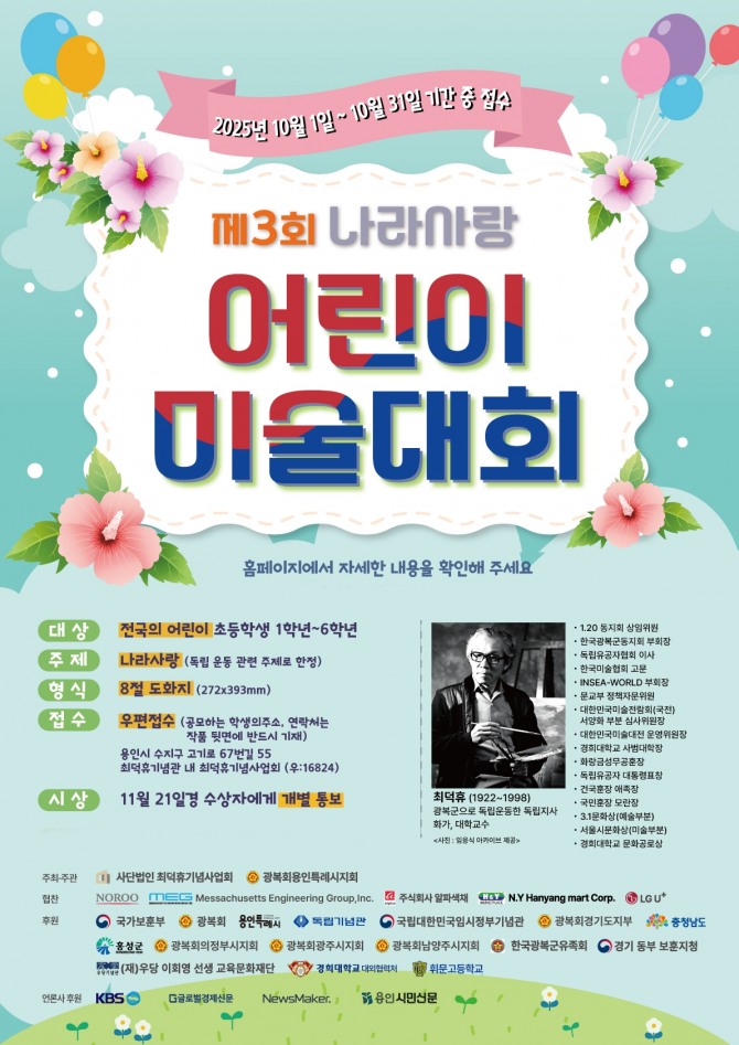 이번 행사는 사단법인 최덕휴기념사업회와 광복회용인특례시지회 등이 공동 주최한다. 이 대회가 가진 특별한 의미가 있다. 이는 광복군 출신으로 활동했던 독립유공자이자 화가였던 최덕휴(1922~1998) 선생의 정신을 기리기 위해 마련된 것이다. 그의 예술혼과 독립 정신을 아이들이 그림으로 이어받게 된다.
