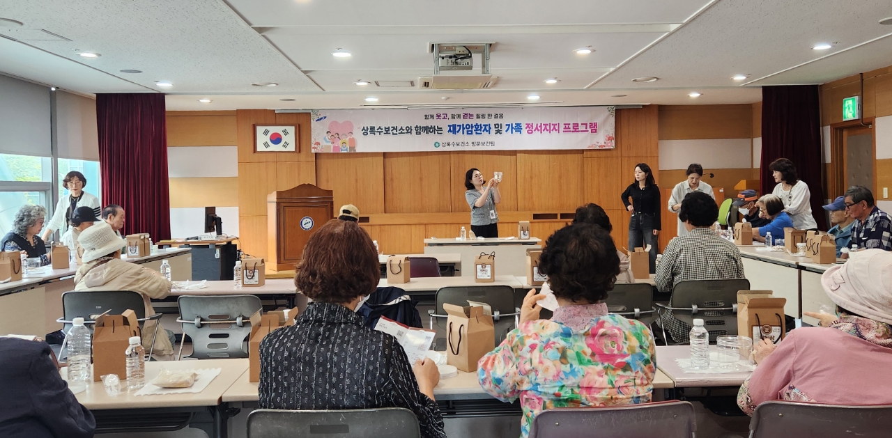 이미지 확대보기이번 프로그램은 방문건강관리사업의 일환으로 재가암환자와 가족이 정서적 지지를 통해 회복의 힘을 얻고 일상 속 활력을 되찾을 수 있게 하고자 마련됐다.