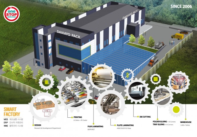 올해 견학공장으로 선정된 5개 기업 중 하나인 경기도 파주 소재 종이패키지 전문 제조업체 다마요팩은 스마트공장 도입을 통해 제조 경쟁력을 크게 높인 사례로 다마요팩은 공정 간 협업과 납기 준수가 중요한 업종 특성을 고려해 MES(제조실행시스템) 도입을 핵심 전략으로 삼았다.