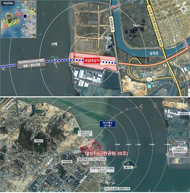 영종하늘도시 근린공원 20호(면적 12만5327㎡)와 청라국제도시 내 완충녹지 101호, 경관녹지 32호 및 74호(총 면적 13만2601㎡)를 포함 총 면적 25만7928㎡ 규모로 진행된다. 이를 제3연륙교 관광시설(해상전망대, 엣지워크, 야간경관 등)과 연계할 계획이다.