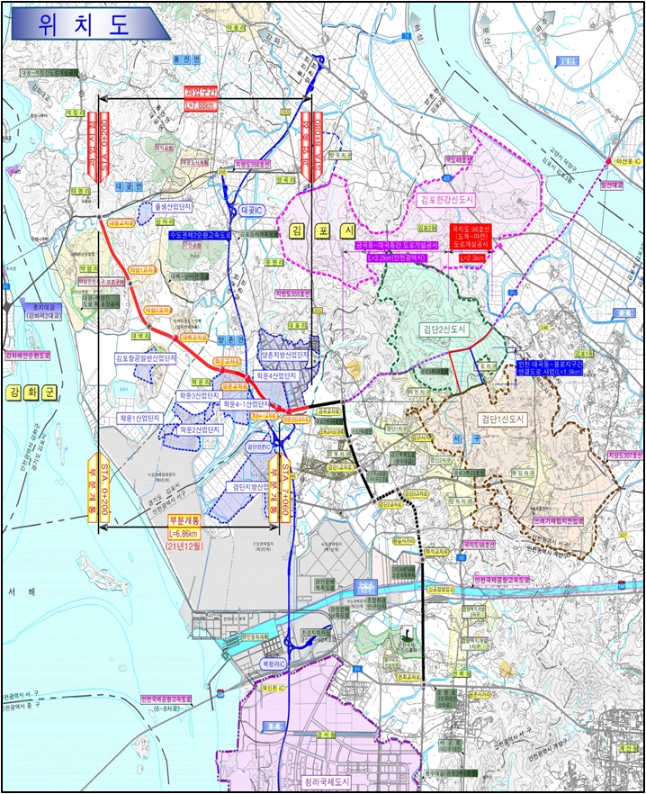 30일 도에 따르면, 이번 사업은 김포시 대곶면 대명리에서 양촌읍 대포리를 잇는 총 연장 7.88km, 폭 20~27m(4~6차로) 규모로, 교차로 8곳(지하차도 1곳 포함)과 교량 7곳을 신설하는 대형 도로 기반시설 확충 프로젝트다. 총사업비는 2,538억 원이 투입됐다.