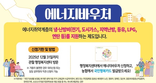 이를 통해 농협은행 및 농·축협에 방문한 노인, 장애인 등 정보 취약계층이 자연스럽게 에너지바우처 제도를 인지할 수 있어 에너지복지 사각지대 해소에 기여할 것으로 기대된다. 아울러 원활한 실물카드 발급으로 제도 이용의 편의성도 향상될 전망이다.
