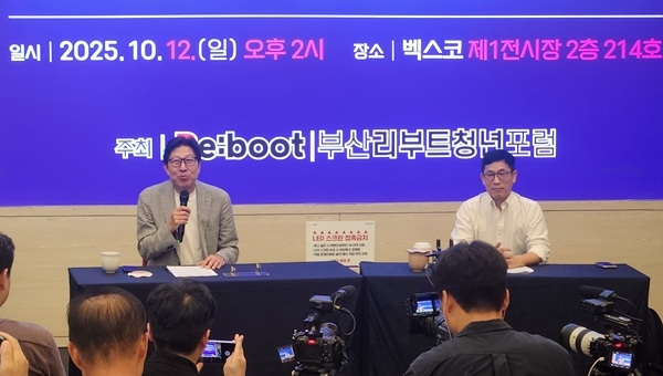 박형준 부산시장과 시사평론가 진중권 전 동양대 교수가 나란히 무대에 올라 한국 민주주의의 현주소를 놓고 날 선 대담을 벌였다. 부산리부트청년포럼(회장 최원기) 주최로 열린 이날 행사는 지역 오피니언 리더와 청년 등 200여 명이 참석해 높은 관심을 보였다.
