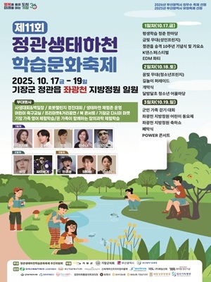 이미지 확대보기1‘정관 생태하천 학습문화축제’는 부산시 구·군 축제 평가에서 ‘2024년 부산시 지정 최우수 축제’ 및 ‘2025년 유망축제’로 연이어 선정되면서, 우수한 축제 콘텐츠를 대외적으로 인정받고 있다. 올해는 11회째를 맞아 더욱 풍성하고 다채로운 프로그램으로 진행될 예정이다.