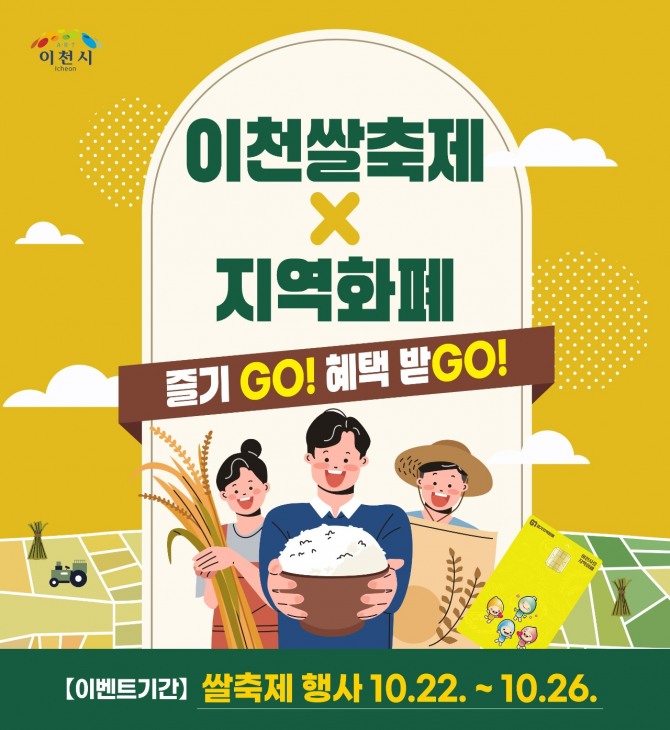이미지 확대보기시는 코나아이(주)의 경기지역화폐 사회공헌 재원을 활용해 ‘이천쌀축제, 지역화폐로 즐기고(GO), 혜택받고(GO)’ 프로그램을 추진하며, 축제장과 모가면 지역 내 지역화폐 가맹점에서 ‘경기이천사랑 지역화폐’로 5만 원 이상 결제한 시민을 대상으로 혜택을 제공한다.